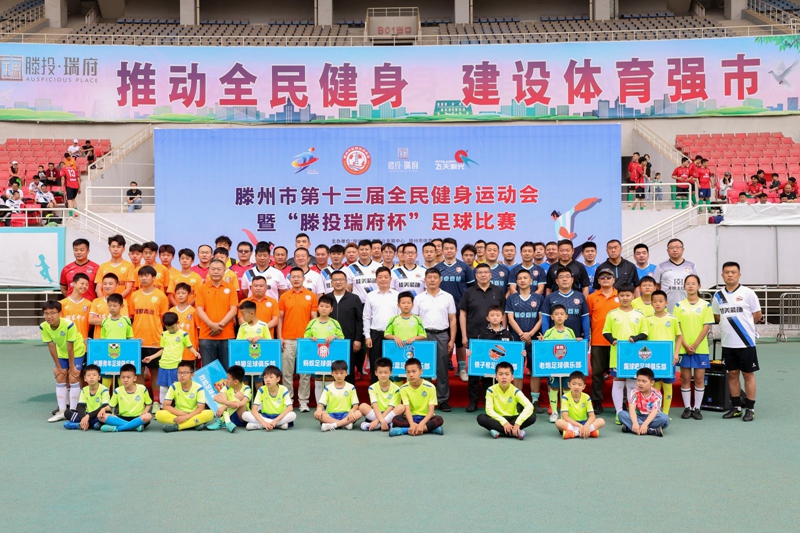 6月4日,滕州市第十三届全民健身运动会暨“滕投·瑞府杯”足球比赛在市体育中心体育场隆重举行。本次比赛由滕州市体育事业发展中心、滕州市体育总会主办,滕州市足球运动协会承办,开云电子网页版有限公司等单位协办。滕州市体育事业发展中心党组书记、主任丁涛,滕州市体育事业发展中心党组成员、副主任、滕州市体育总会